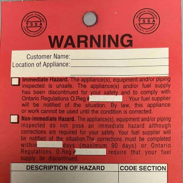 If your homes gas appliance, furnace, fireplace, water heater, or other gas related equipment has been tedtagged by a licensed TSSA gas technician or HVAC contractor in Ontario, you probally have , questions about what this warning tag means and how to get the red tag removed by getting your home back to safe operation.